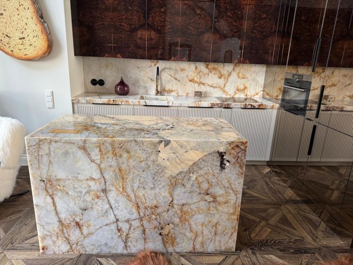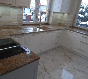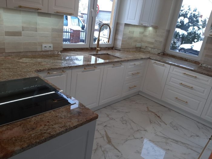 Blaty kuchenne to nie tylko estetyczny element ozdobny pomieszczenia, ale przede wszystkim wykończenie mebli, zapewniające wygodną przestrzeń roboczą. Blat powinien być więc odporny na uszkodzenia mechaniczne, na wysoką i niską temperaturę oraz wilgoć, a jednocześnie cechować się ponadczasowym wyglądem, wpisującym się w indywidualną stylistykę mieszkania. W naszej ofercie posiadamy blaty kuchenne na wymiar, wykonywane z kamienia. Blaty kuchenne kamienne to niepowtarzalne naturalne wzornictwo, trwałość oraz łatwość w utrzymaniu w czystości. To cechy, które sprawiają, że naturalne surowce coraz częściej zapraszane są do domowych kuchni. Wykonujemy blaty z różnych gatunków kamienia, dostosowanych do indywidualnych preferencji inwestora.